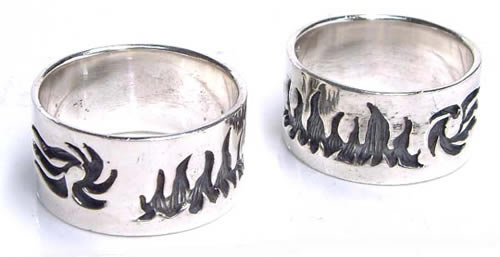 めらめらと燃え上がるファイアーパターンのトライバルタトゥをデザインしたシルバーリングです。